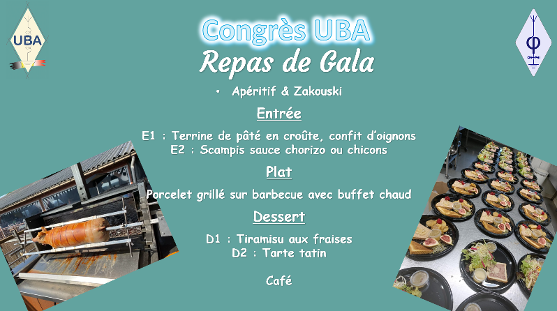 Prix 65 € TTC à verser sur le compte au plus tard pour le 10 avril : BE19 1030 4623 4312 avec comme communication AG26 Votre Indicatif suivi du choix de l’entrée et du dessert.